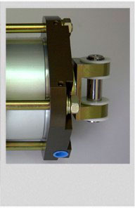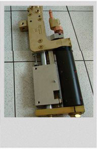 Após a operação de fechamento do fundo do cilindro, o equipamento é colocado em uma prensa para permitir que o fundo seja moldado, e desse modo, manter o cilindro na posição vertical.